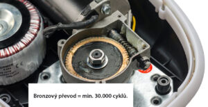Spolehlivý: vnitřní kovové díly jsou předzvěstí dlouhé životnosti. Toroidní transformátor zaručuje napájení s minimálními ztrátami. V balení jsou dalšími úchyty dráhy, aby při provozu nedocházelo k průhybu dráhy ani u těžších vrat.