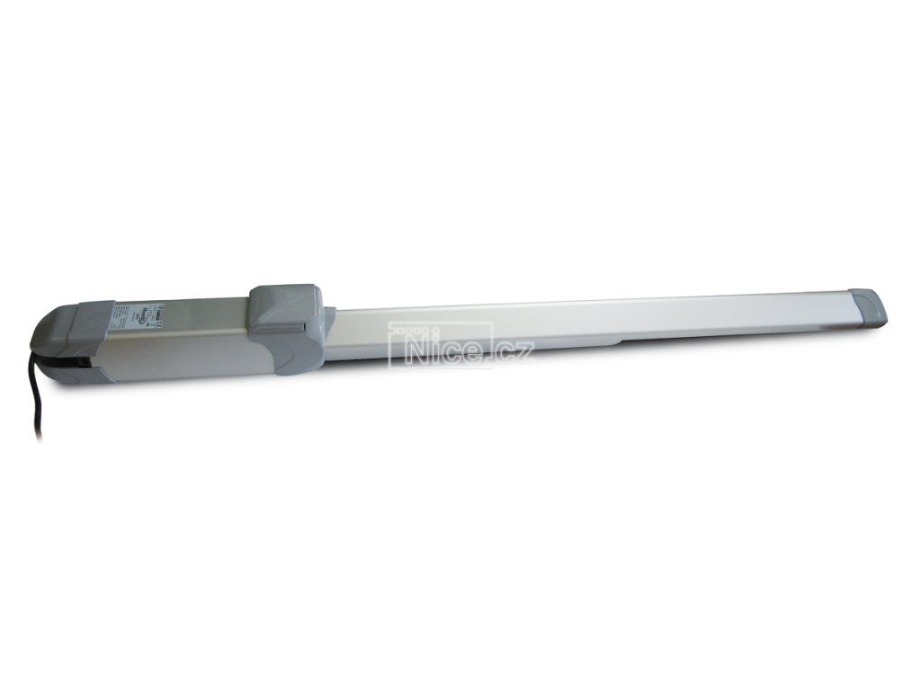 Hydraulický pohon HINDI 880 bez blokování se stavitelným zpomalením při otevření/zavření doplněný příchytkami pro svařování, přívodním kabelem, 2 klíči k zámku chránících regulační ventily. Pro křídlo do 8 m nebo 550 kg, čas otevření cca 45s + čas zpomalení.