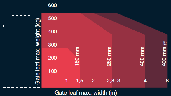 - u křídel brány širších než 4 m se doporučuje oboustranná verze (bez hydraulického zamykání) plus elektrický zámek na bráně.