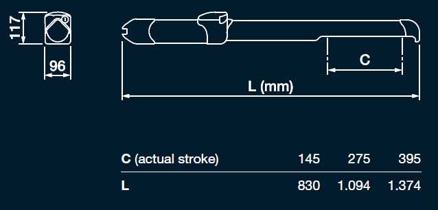 Stylový design vnější konstrukce z extrudovaného eloxovaného hliníku zajišťuje výborné krytí pohyblivého pístu vůči otevřeným povětrnostním vlivům.