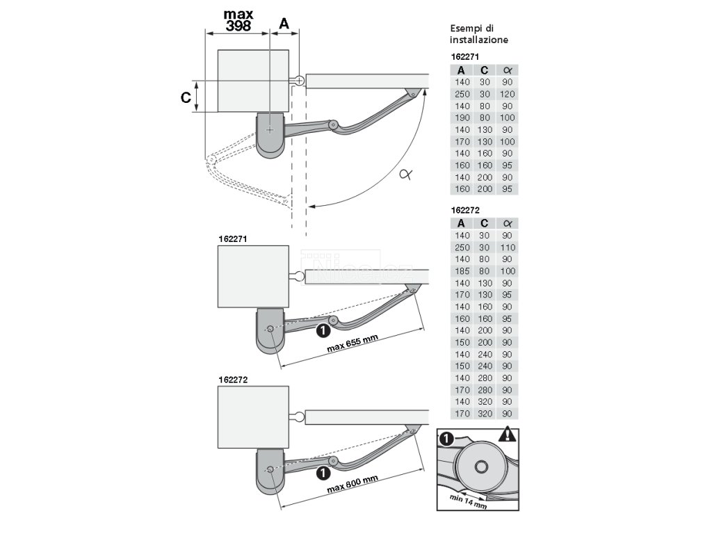 Pro křídla do šířky 4200 mm a/anebo pro křídla se vzdáleností pant - hrana pilíře až 320 mm.