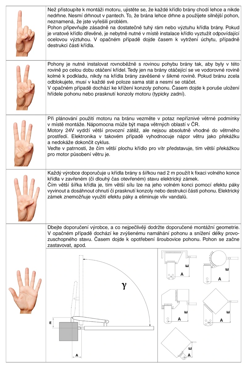 Spolehlivé a tiché motory s rozběhovými kondenzátory. Klasické provedení s krytou šroubovicí, která je chráněna před atmosférickými vlivy, prachem a špínou. Při zavření i otevření každého křídla je nutné vymezit jeho pohyb zhotovením pevné zarážky do země.