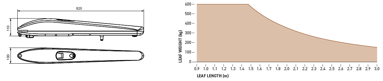 Sada pohonů 230V řady LN / STARK pro dvoukřídlé brány do 2 x 3m a hmotnosti 2 x 600kg. Více vyčtete z grafu níže.