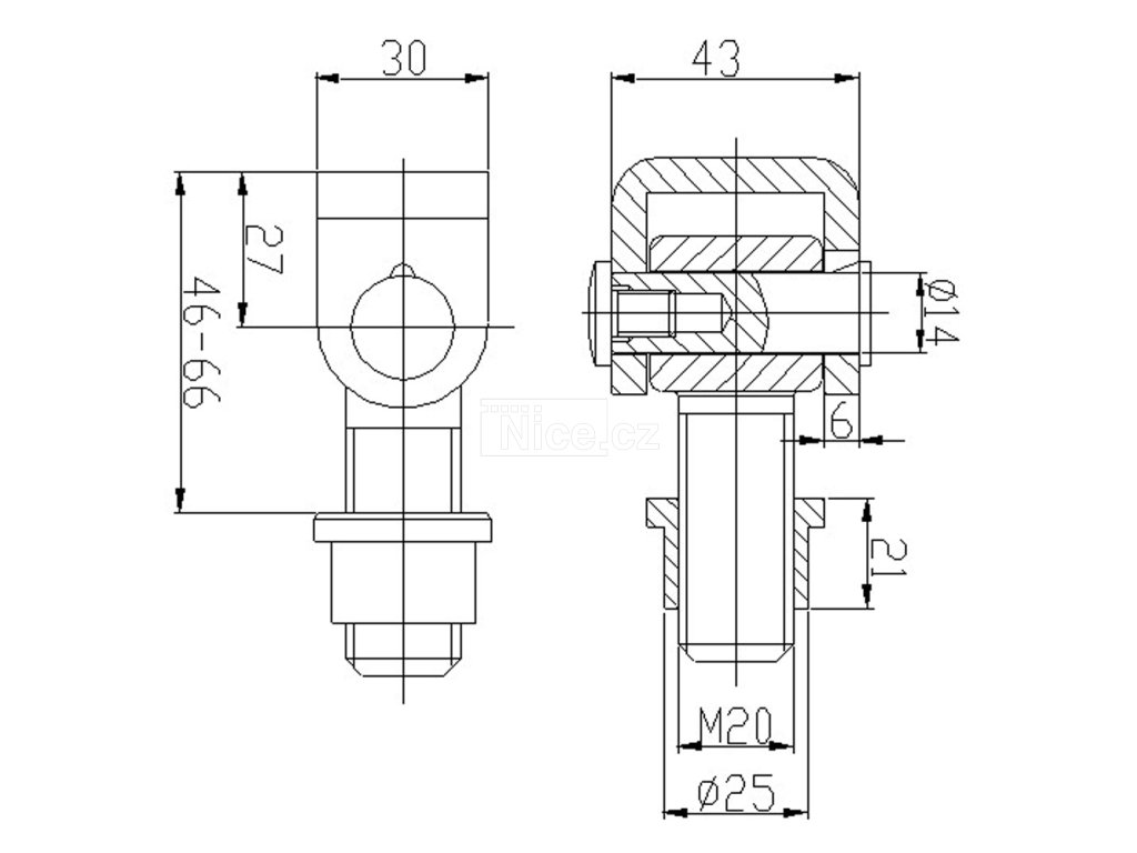 Závěsný nastavitelný nerezový pant s uzavřenou konzolou pro přivaření ke křídlu brány a varným pouzdrem pro přivaření do sloupku, se závitem M20.